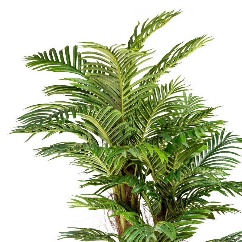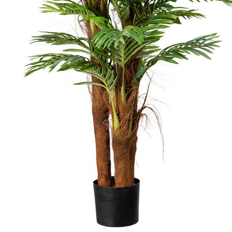 Umelá palma Areca je vysoká cca 160cm a je dodávaná s kotviacim kvetináčom 19x17cm. Rastlina umelej paly má 3 kmene s prírodným palmovým vláknom a celkom 27ks listov. Zelené prepracované listy. Veľmi realistický vzhľad a prijateľná cena. Je to stále krásna zelená dekorácia do interiéru, ktorá robí radosť zákazníkom po mnoho rokov.