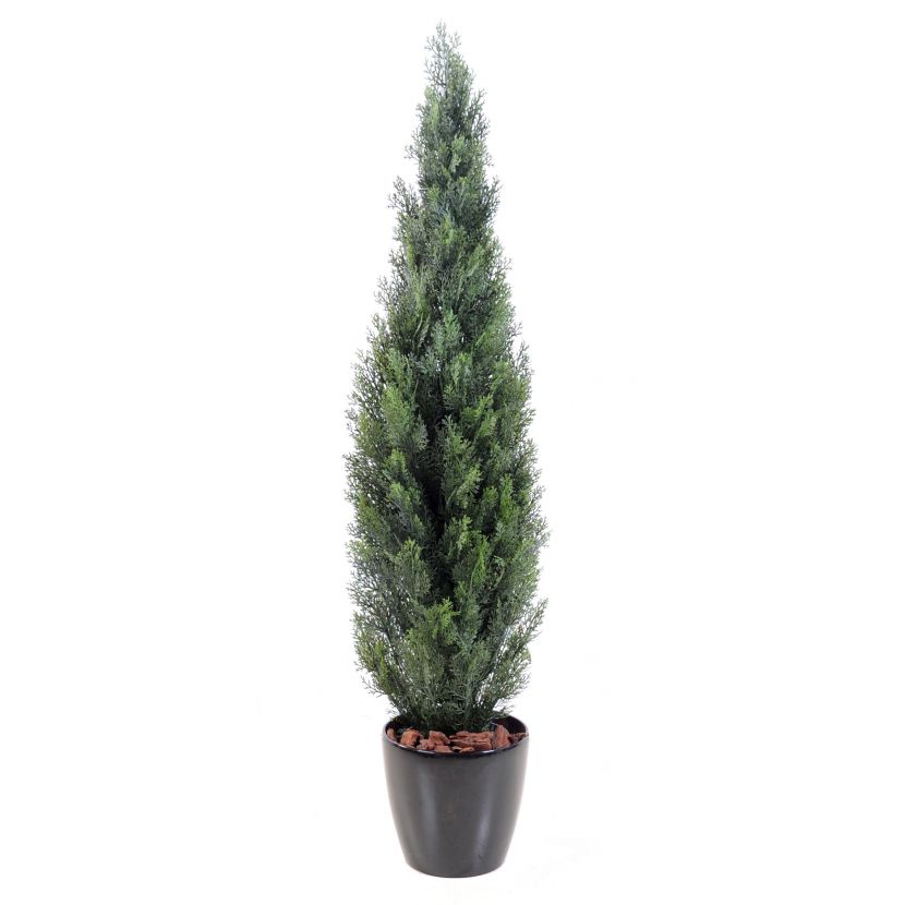 Umelý strom cyprus v tmavo zelenej je vysoký 150cm vrátane plastového kvetináča. Prepracované listy v rôznych odtieňoch zelenej pre dokonalú imitáciu skutočného cyprusu. Priemer koruny cca 35cm - je možné aranžovať +- niekoľko centimetrov. Výška stromu vrátane kotviaceho kvetináča je cca 150cm. Rozmer kvetináča je 17cm výška, 18cm priemer. Dodávané v kotviacom kvetináči. Hmotnosť 5,7Kg. Možno umiestniť aj do exteriéru.