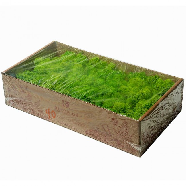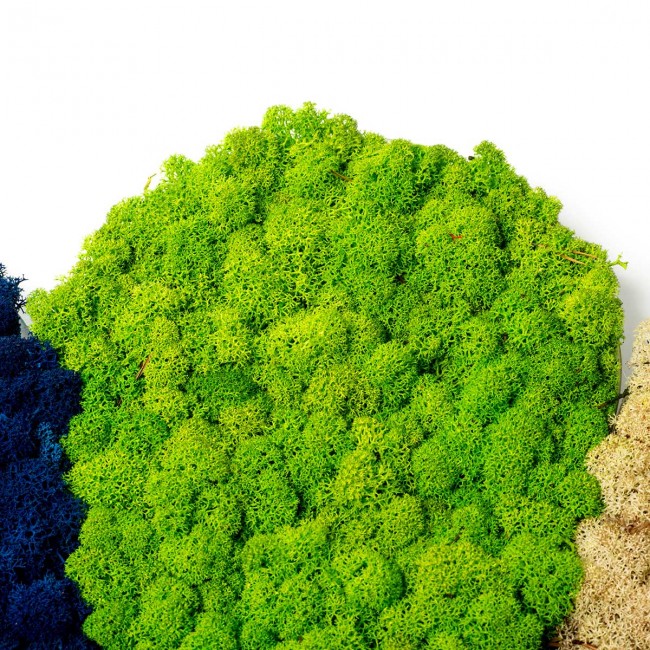 Luxusný stabilizovaný mach - sobí mach špičkovej kvality vo farbe zeleného jablka. Čistený organický mach - lišajník, ktorý už síce nie je živý, ale ponechá si vzhľad, mäkkosť a štruktúru živého machu. Používa sa v interiéroch na vytvorenie krásnych dekorácií. Vďaka životnosti cca 5 rokov sa jedná o dlhodobú a krásnu dekoráciu vhodnú pre súkromné aj verejné priestory.