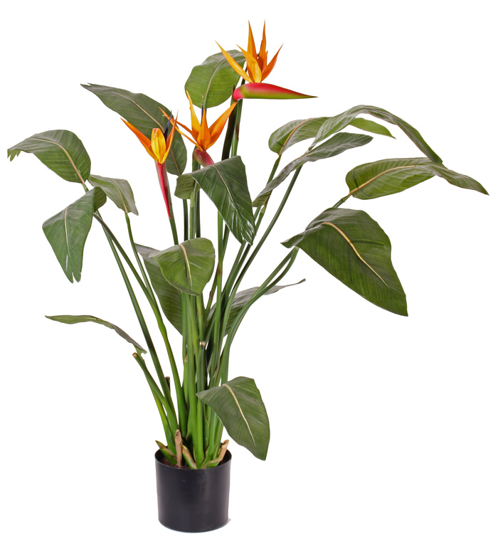 Umelá kvetina Strelitzia v deluxe vykonanej má celkovú výšku cca 110cm vrátane kotviaceho kvetináča 15x20cm. Krásne listy s prírodnou štruktúrou vyzerajú ako živé, celkom 16 listov a 3 krásne kvety.