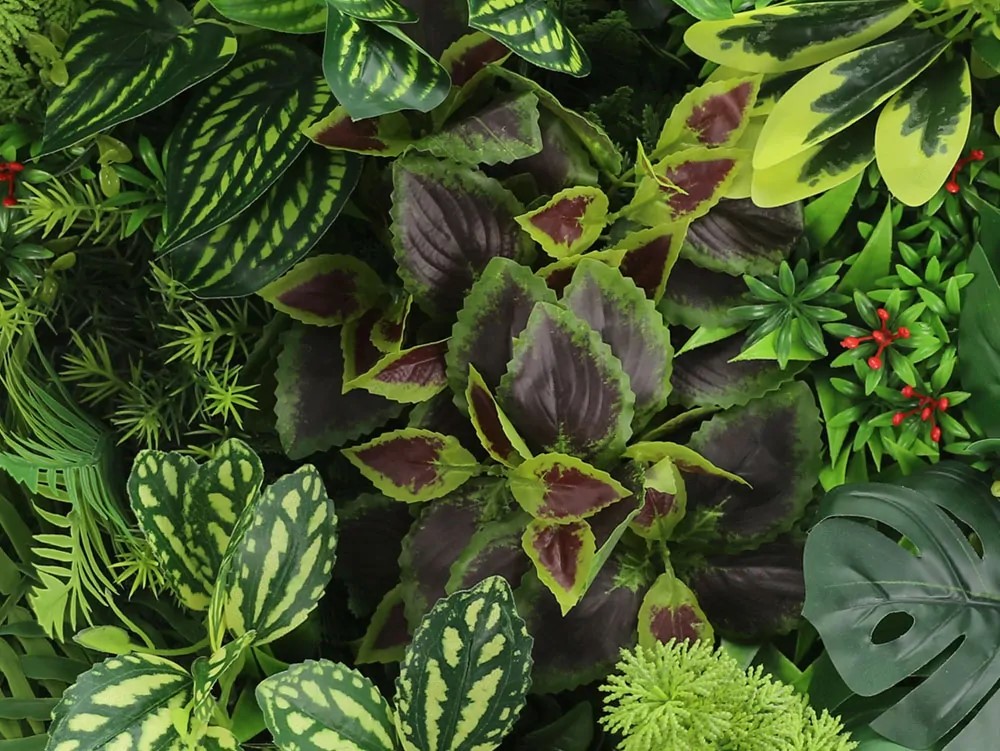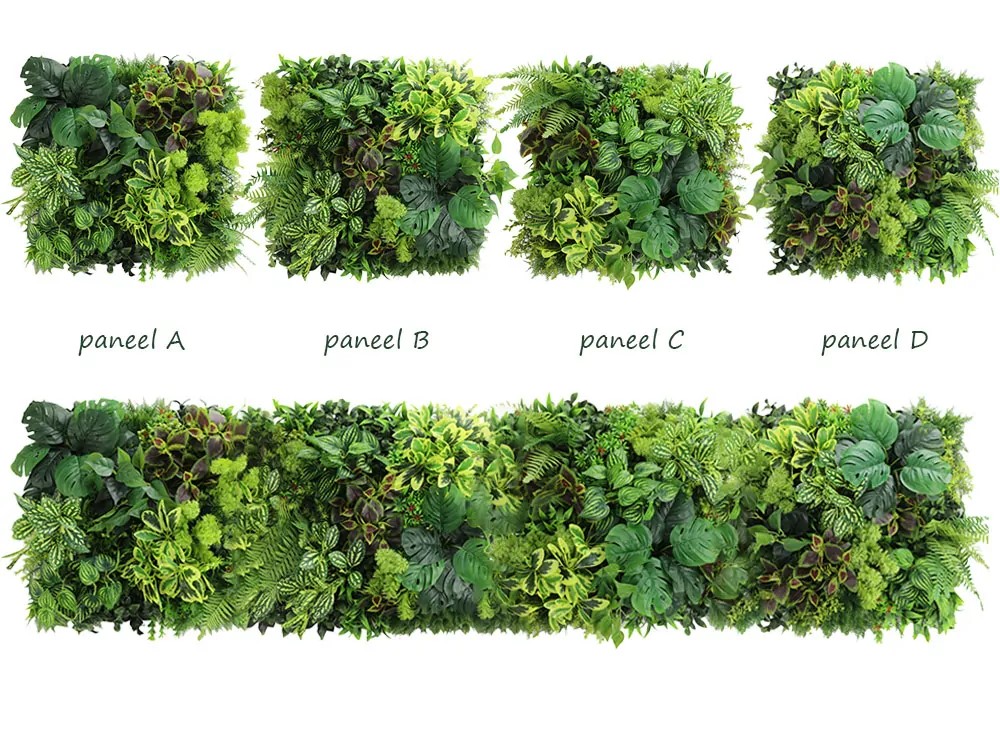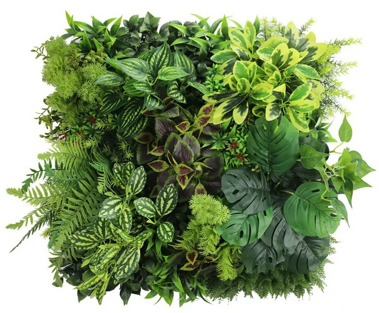 Umelá živá stena EUONYMUS LUXE s mixom rastlín je vyrábaná v luxusnej kvalite s najrealistickejším dizajnom. Oproti iným modelom má rastliny z prémiových materiálov s dôrazom na autentickosť a je tiež viac do priestoru, až cca 20cm. Zelená stena je dodávaný ako prepojiteľný dielec 50x50cm v celkovej ploche 0,25m2. Dielce je možné jednoducho upraviť nožnicami, alebo štiepačkami na požadovaný rozmer. Dielce sa spájajú pomocou integrovaných otvorov a príchytiek, je možné tak vytvoriť nekonečne veľkú na seba nadväzujúcu plochu. Nosná kostra je tvorená plastovým rastrom. Veľmi jednoduchá inštalácia. Materiál listov: PE. Dekoratívnu časť umelej zelenej steny tvorí mix rôznych rastlín. Veľa veľkostí, tvarov a farieb zaisťuje vysokú realistickosť. dokonale tak imitujú skutočné rastúce živé steny. Rozloženie listov je pohľadovo jednostranné. Vhodné pre vytvorenie plotov, ale aj ako dekorácia do komerčných priestorov, hotelov, reštaurácií, ale aj bytov a domov. Vďaka tejto živej stene vytvoríte ľahko vertikálnu záhradu. Cena za 1ks 50x50cm. Vyrába sa v 4 prevedeniach A, B, C, D pri objednávke nie je možné zvoliť konkrétny typ, bude odoslaný náhodný mix.