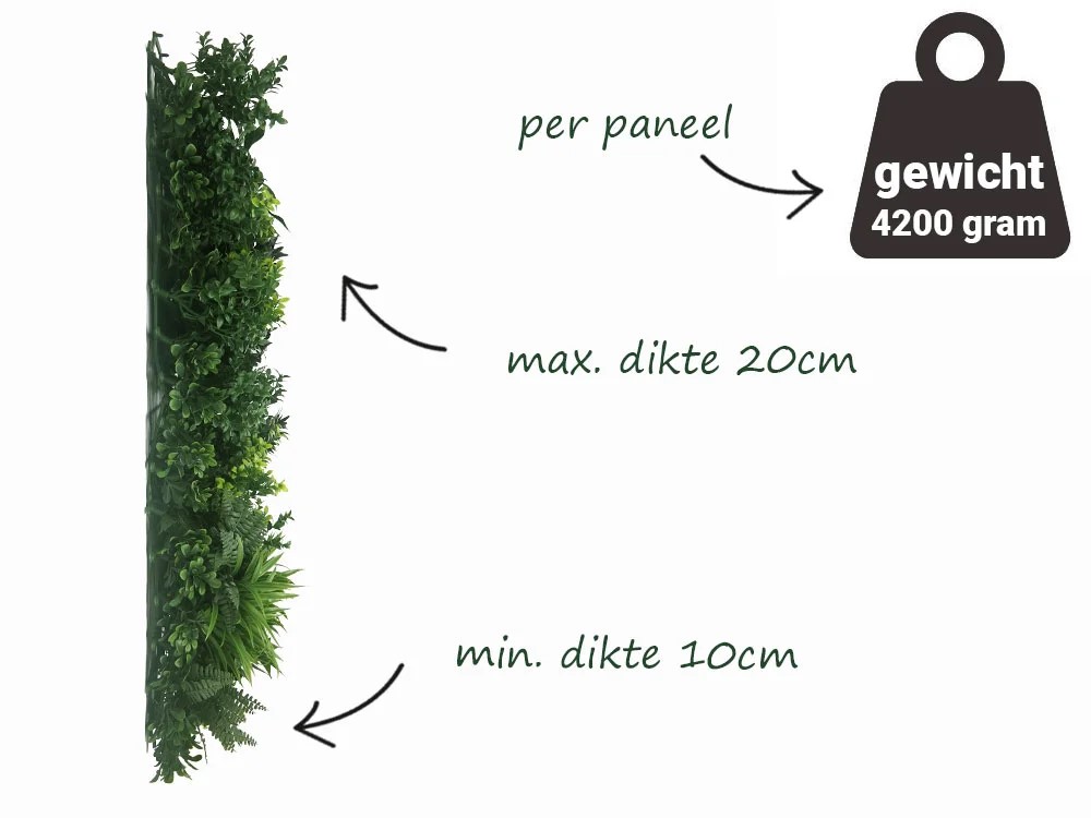 Umelá živá stena FANTASIA s mixom mnohých druhov rastlín je možné použiť v interiéroch aj exteriéroch. Vyrábané v luxusnej kvalite s najrealistickejším designom. Zelená stena je dodávaný ako prepojiteľný dielec 100x100cm v celkovej ploche 1m2. Táto zelená živá stena sa dodáva iba po baleniach 1m2. Dielce je možné jednoducho upraviť nožnicami, alebo štiepačkami na požadovaný rozmer. Dielce sa spájajú pomocou integrovaných otvorov a príchytiek, je možné tak vytvoriť nekonečne veľkú na seba nadväzujúcu plochu. Nosná kostra je tvorená plastovým rastrom o 9ks menších dielcov cca 33x33cm. Veľmi jednoduchá inštalácia. Materiál listov: PVC. Dekoratívnu časť umelej zelenej steny tvorí mix rôznych rastlín. Veľa veľkostí, tvarov a farieb zaisťuje vysokú realistickosť. dokonale tak imitujú skutočné rastúce živé steny. Veľmi husté, takmer 100% zatienenie. Rozloženie listov je pohľadovo jednostranné. Úplne netoxické a bez ťažkých kovov. Vhodné pre vytvorenie plotov, ale aj ako dekorácia do komerčných priestorov, hotelov, reštaurácií, ale aj bytov a domov. Vďaka tejto živej stene vytvoríte ľahko vertikálnu záhradu.