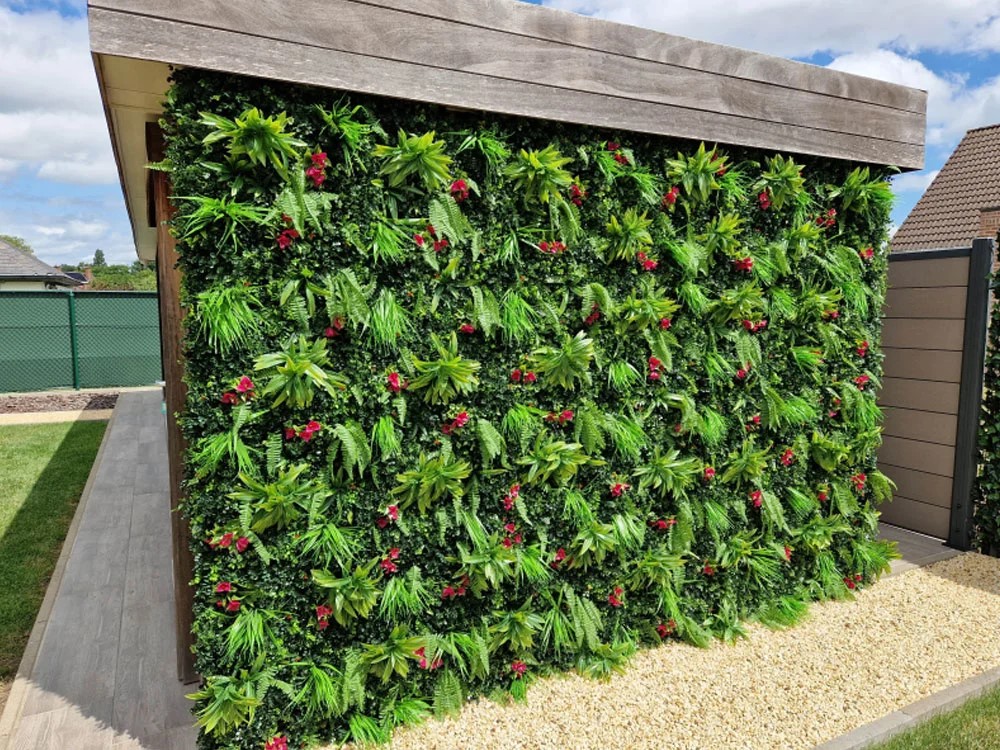 Umelá živá stena MIX DRACAENA s mixom rastlín je vyrábaná v luxusnej kvalite s najrealistickejším dizajnom. Zelená stena je dodávaný ako prepojiteľný dielec 50x50cm v celkovej ploche 0,25m2. Dielce je možné jednoducho upraviť nožnicami, alebo štiepačkami na požadovaný rozmer. Dielce sa spájajú pomocou integrovaných otvorov a príchytiek, je možné tak vytvoriť nekonečne veľkú na seba nadväzujúcu plochu. Nosná kostra je tvorená plastovým rastrom. Veľmi jednoduchá inštalácia. Materiál listov: PVC. Dekoratívnu časť umelej zelenej steny tvorí mix rôznych rastlín. Veľa veľkostí, tvarov a farieb zaisťuje vysokú realistickosť. dokonale tak imitujú skutočné rastúce živé steny. Rozloženie listov je pohľadovo jednostranné. Úplne netoxické a bez ťažkých kovov. Vhodné pre vytvorenie plotov, ale aj ako dekorácia do komerčných priestorov, hotelov, reštaurácií, ale aj bytov a domov. Vďaka tejto živej stene vytvoríte ľahko vertikálnu záhradu. Cena za 1ks 50x50cm. Vyrábí se ve 4 provedeních A, B, C, D při objednávce nelze zvolit konkrétní typ, bude odeslán náhodný mix.
