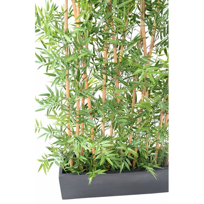 Umelý živý plot z bambusu je vysoký 180cm, široký 45cm a na dĺžku meria 90cm. Umelý bambusový plot je zakotvený do podstavca pre dobrú stabilitu a jednoduchú inštaláciu. Dĺžka podstavca: 70cm, šírka 18cm. Hmotnosť plotu: 9,10kg.